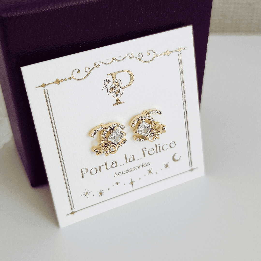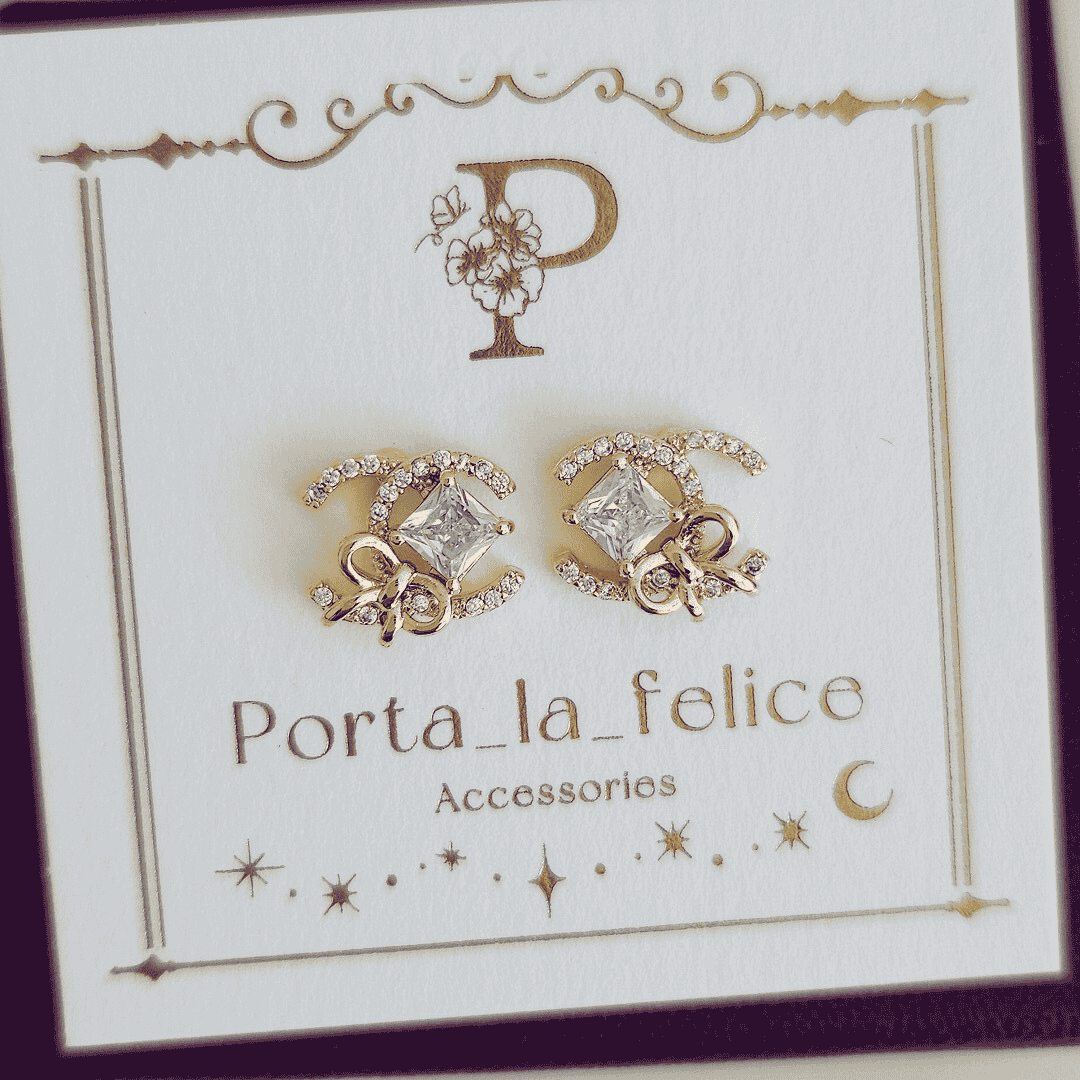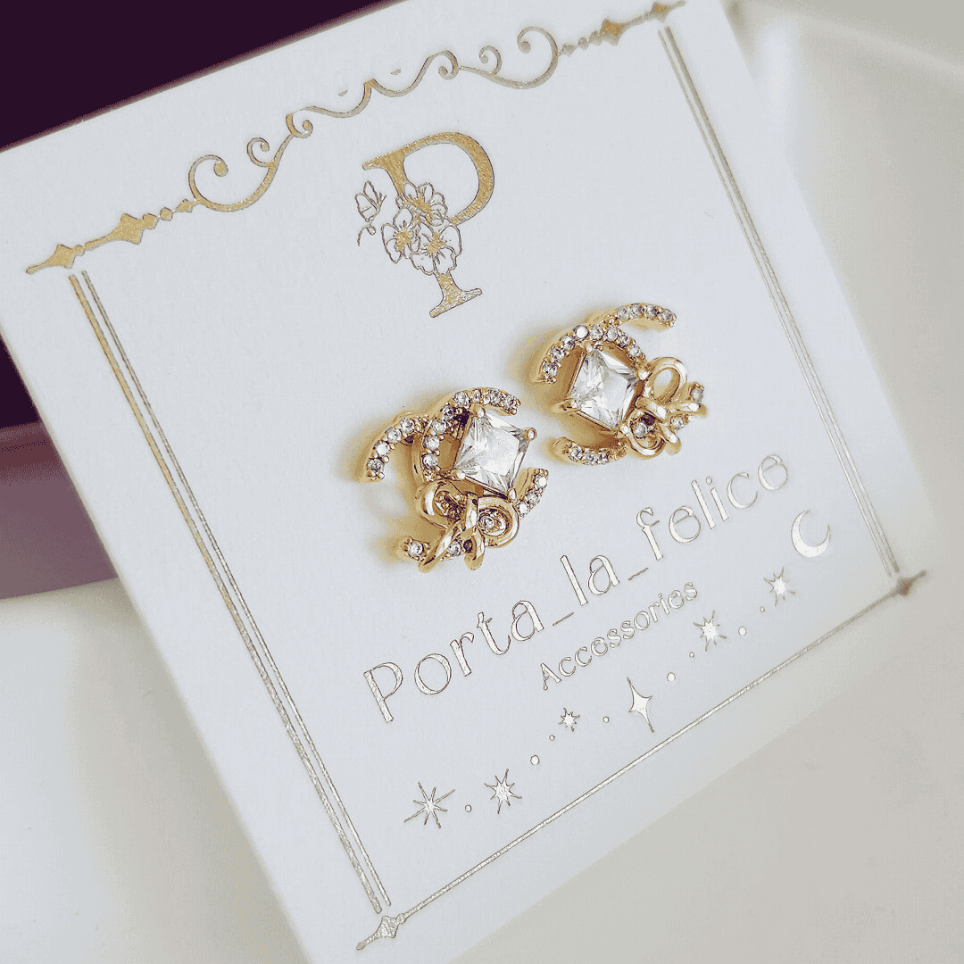 大人可愛い! Bijou & Ribbon Cz CC pierce & earring