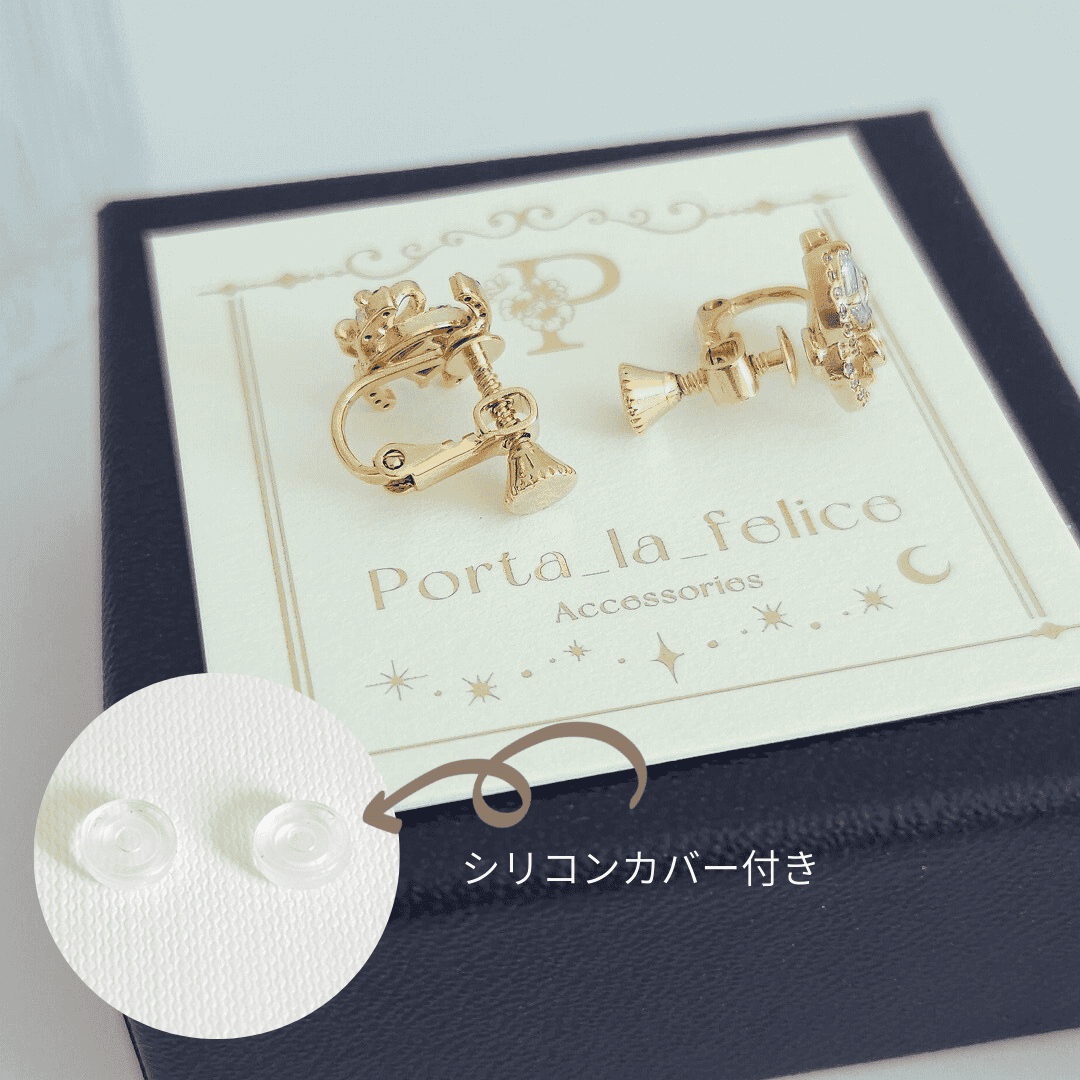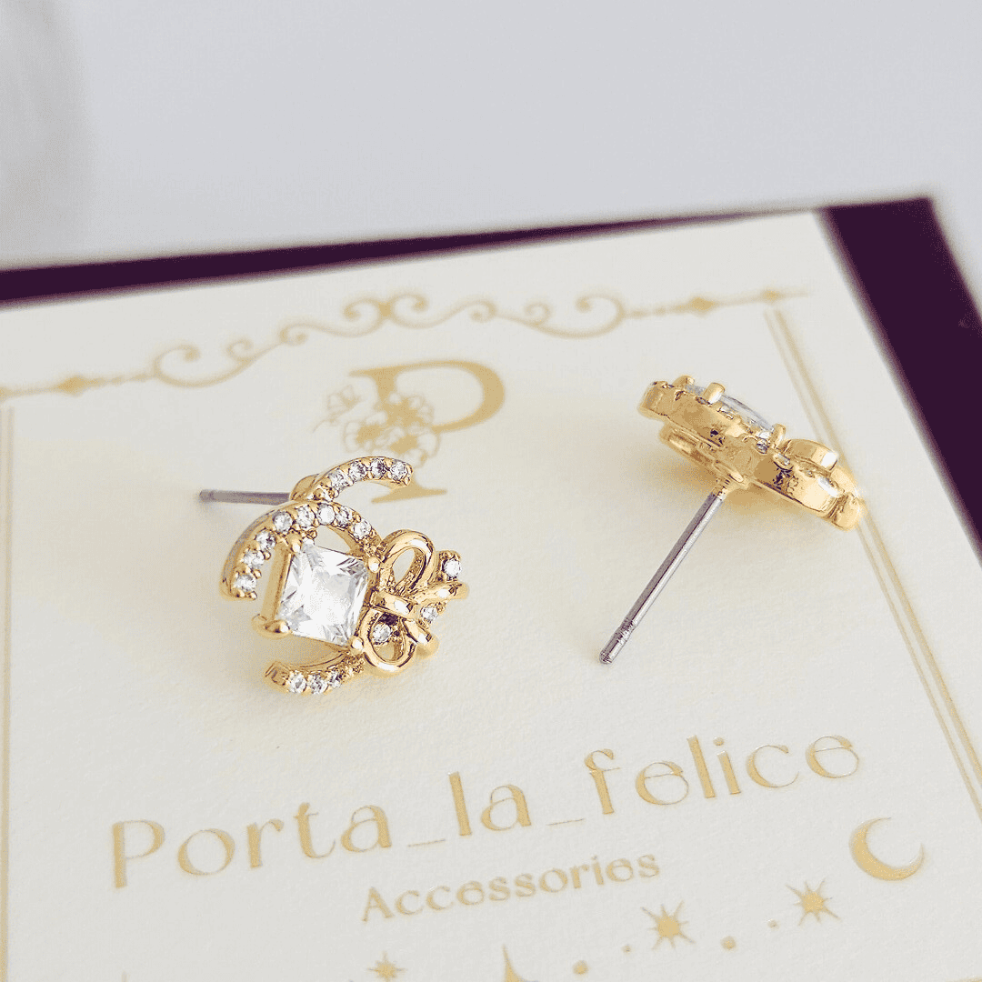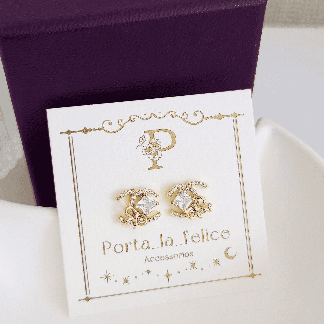 大人可愛い! Bijou & Ribbon Cz CC pierce & earring